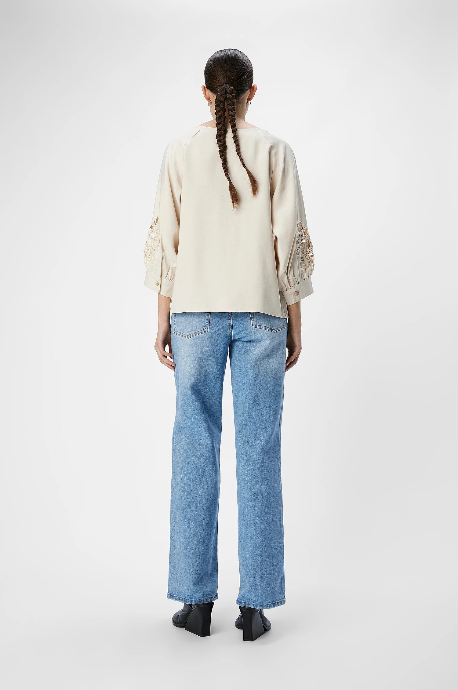 OBJECT focuses on sustainable, feminine, and versatile designs. The Maiken blouse reflects this with intricate detailing and everyday wearability.